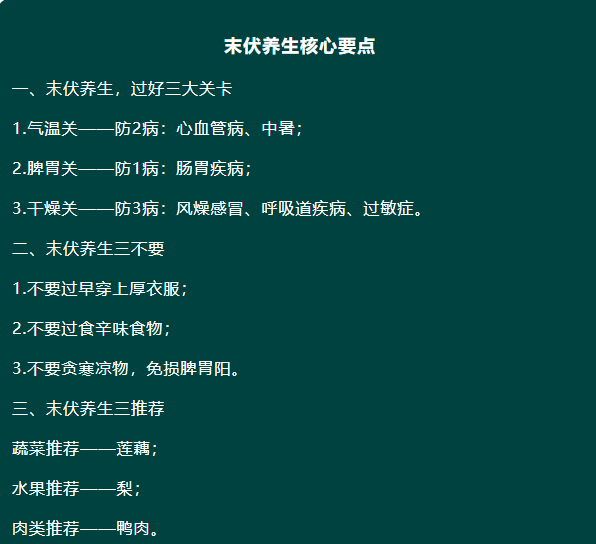 本文鏈接:末伏養生 過好這三關秋冬少生病http://m.sq15.cn/show-11-24616-0.html