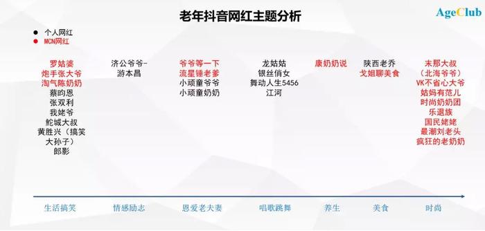 而根據(jù)AgeClub的調(diào)查,從2019年到2021年,僅在抖音上走紅的中老年網(wǎng)紅就超過了30位,并且很多賬號的粉絲都已達(dá)到了千萬級。