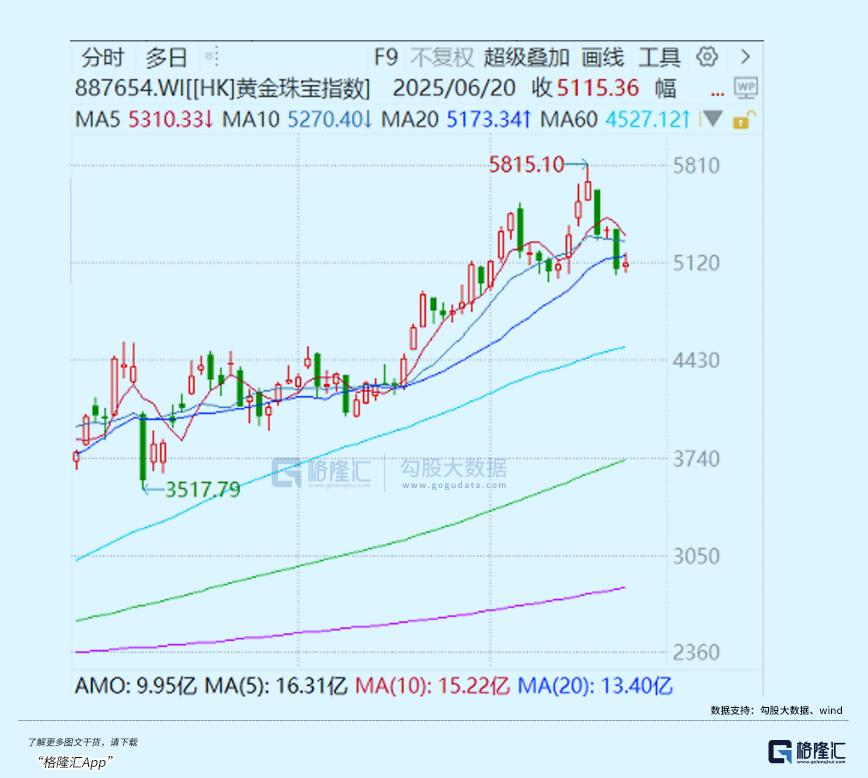 港股黃金珠寶指數也上漲超1500點,其中,周大福上漲近30%,六福珠寶、周生生均上漲超20%。