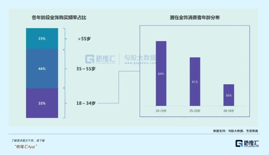 近兩年來,25至34歲的年輕一代金飾消費者在黃金消費市場消費比例急劇增長,從原先的16%躍升至59%。