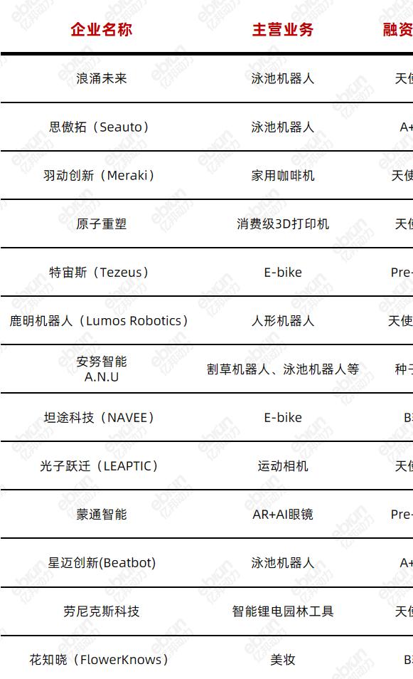 寶時得(POSITEC)——2.5億美元、Nothing——2億美元、元鼎智能(Aiper)——10億元、星邁創新(Beatbot)——10億元、云鯨智能(Narwel)——1億美元、行者無疆(VITURE)——1億美元、光子躍遷(LEAPTIC)——數億元、云深處科技(Deep Robotics)——5億元、漢陽科技(Yarbo)——保守估計超4億元、樂享科技(Lxson)——4億元。