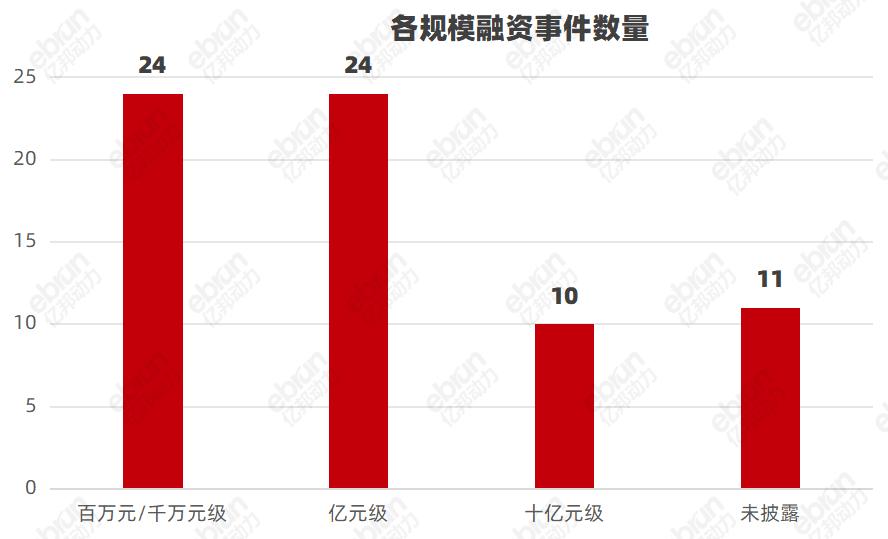 從融資規模來看,今年前三季度的融資主要以百萬/千萬級和億級為主,其中百萬/千萬級融資有24起,億級融資有14起。頭部企業聚攏大量資金,其中不乏獲得了產業相關方押注或成功IPO上市的賽道領軍企業。