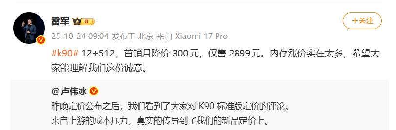 高管頻頻下場喊話用戶理解內(nèi)存價格上漲帶來的壓力 | 圖片來源:微博