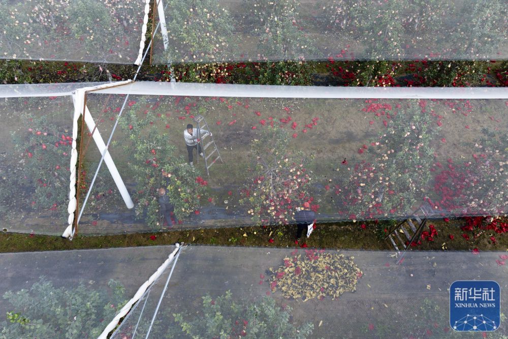 ↑ 10月17日,果農在延安市寶塔區橋溝街道煙洞溝村蘋果園內摘掉蘋果套袋(無人機照片)。新華社記者 邵瑞 攝QIG速刷資訊——每天刷點最新資訊,了解這個世界多一點SUSHUAPOS.COM