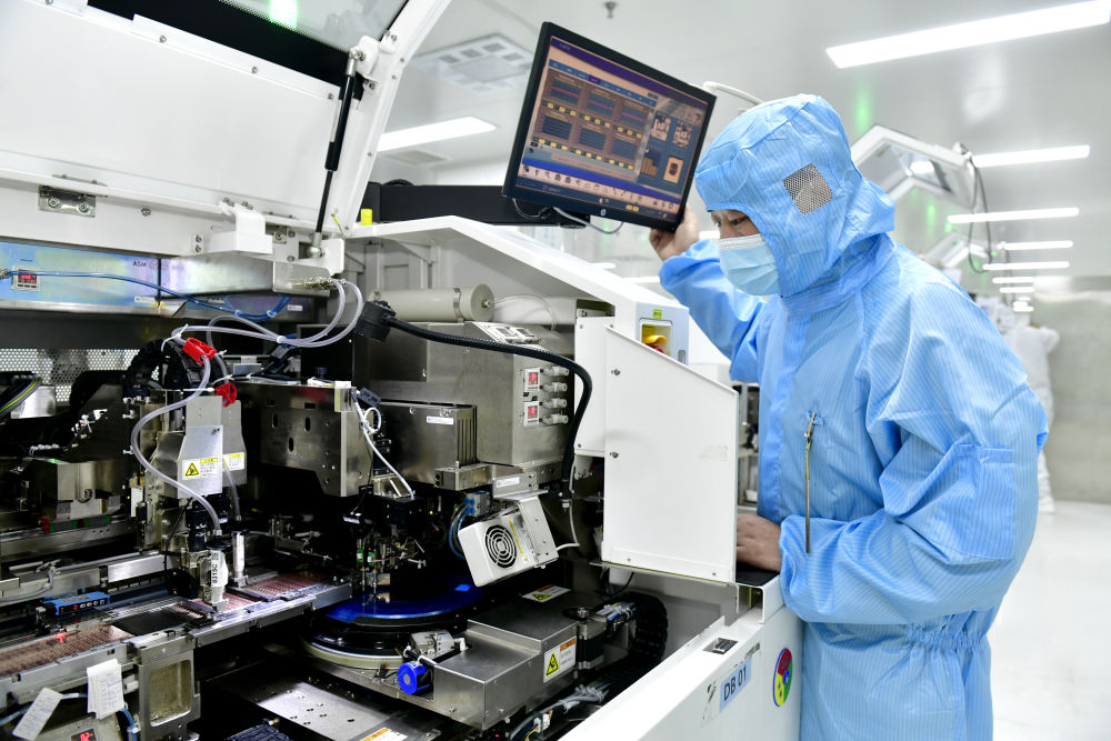 2025年2月13日,在山東一家電子有限公司,工作人員在生產線值守。新華社記者 郭緒雷 攝