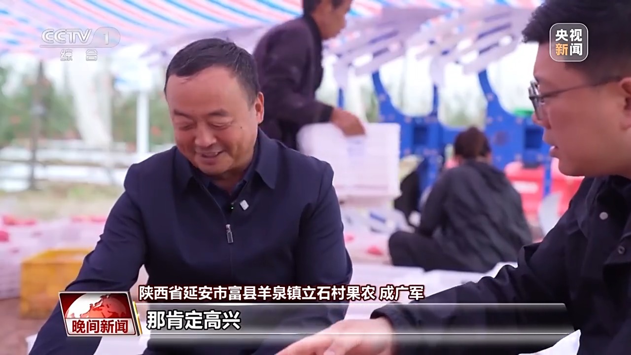 陜西省延安市富縣羊泉鎮立石村果農 成廣軍:我原來想著總共能賣上13萬塊錢,就是一顆蘋果賣一塊錢就行了。現在賣下來,一顆蘋果三塊錢,那肯定高興。