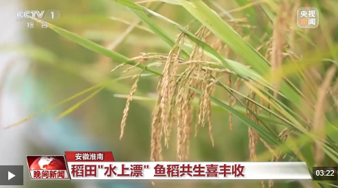 而在安徽淮南,這片由采煤沉陷區改造而來的水上稻田,也迎來豐收。一株株水稻被種植在浮床上,技術專家在基質盆內提前放入緩釋肥,可以持續補充肥效。專門設計的“浮動收割平臺”上,農戶從漂浮板上提起水稻,用鐮刀割下稻穗。水面種植還凈化了水體,為魚類生長提供了良好條件。