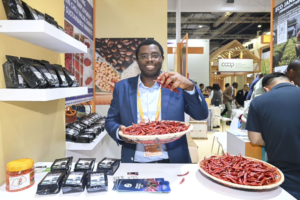 11月7日,盧旺達展商在第八屆進博會展示干辣椒產品。新華社記者 陳浩明 攝Ve3速刷資訊——每天刷點最新資訊,了解這個世界多一點SUSHUAPOS.COM