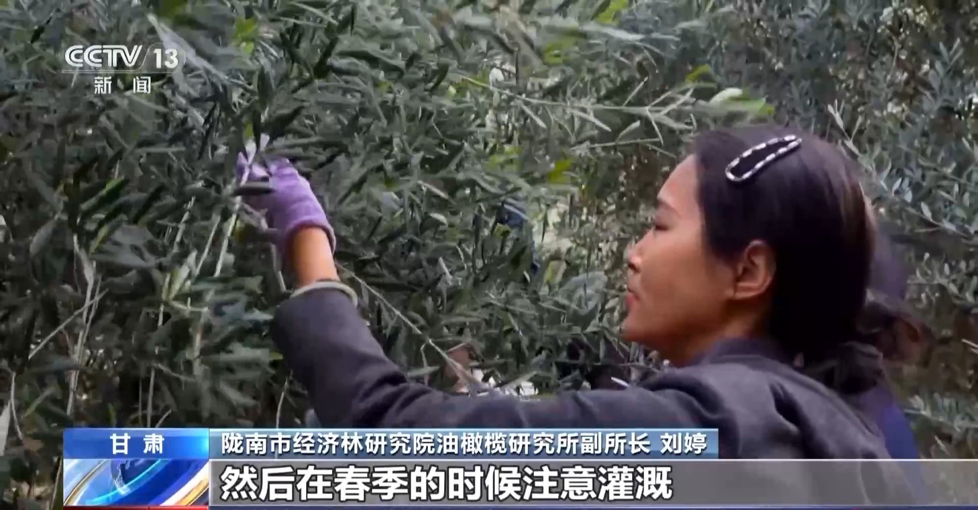 隴南市經濟林研究院油橄欖研究所副所長 劉婷:為了攻克這些問題,我們在栽培中告訴種植戶,在春季的時候注意灌溉,冬季定期進行灌溉補償水分。另外在夏秋季節,通過在建園時提前做措施,保證園地的排水暢通,防止園地出現水澇情況。