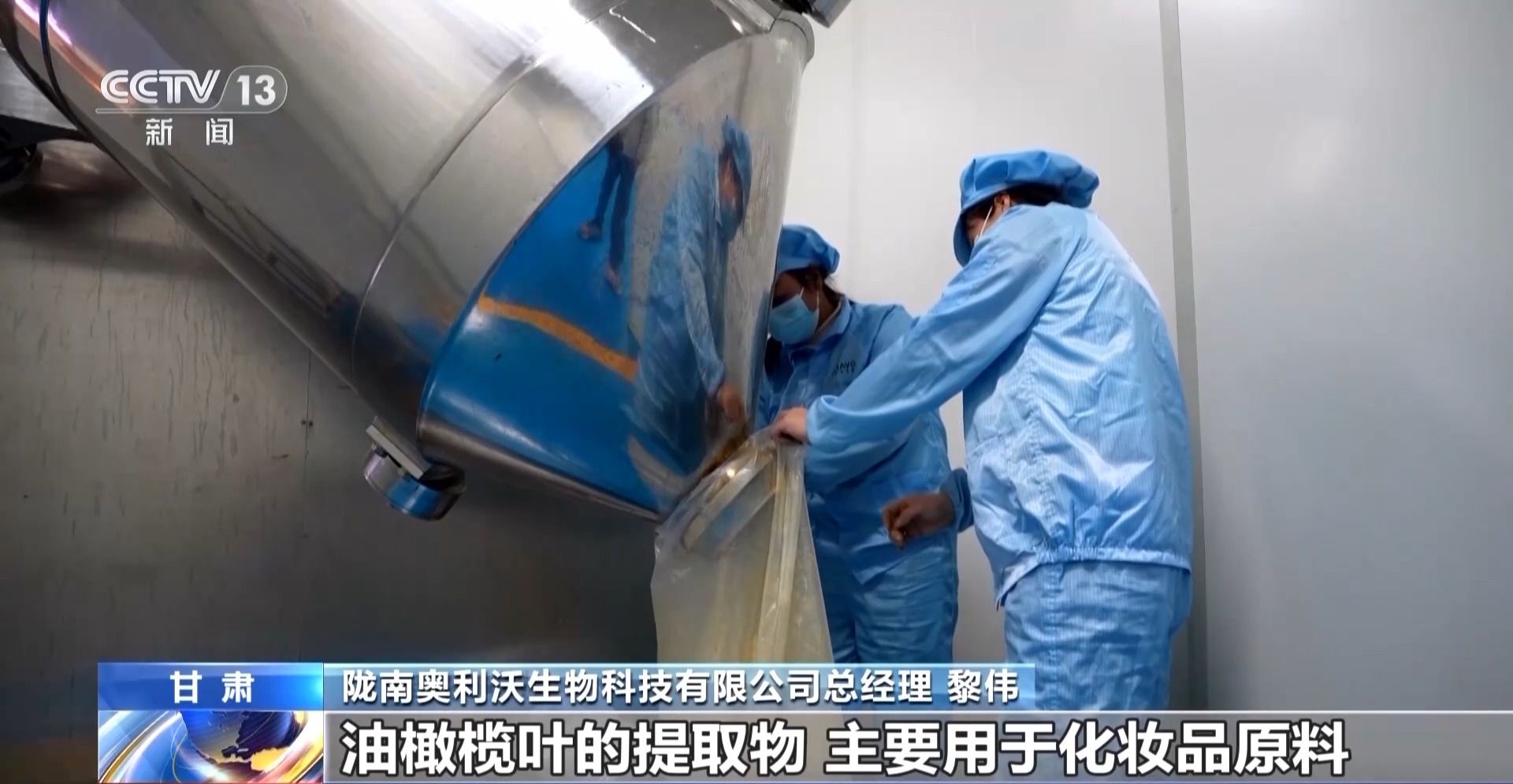 隴南奧利沃生物科技有限公司總經理 黎偉:油橄欖葉的提取物主要用于化妝品原料;油橄欖果渣主要是提取山楂酸,用于飼料添加,提取完之后所有的廢渣,我們會做成生物質顆粒;果核分出來之后能做成高端活性炭。在副產物方面,我們綜合利用率能達到70%。