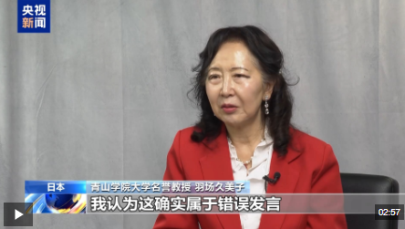 青山學院大學名譽教授 羽場久美子:我認為這確實是一個非常不當的發言。高市是右翼政客,這在國際上也是眾所周知的。但這次尤其是在接受立憲民主黨的國會質詢中,她在正式場合談到臺灣問題時,使用了“存亡危機事態”這樣的詞語,認為日本將進入行使集體自衛權的狀態,這意味著日本會參與戰爭。我認為這確實屬于錯誤發言,正如提問中所說,無論美國還是日本,都承認臺灣問題是中國的內政問題,這是日本政府一貫的立場。