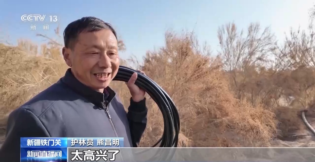 眼下這個季節,正是冬季巡林最忙碌的時候,新疆鐵門關市營盤鎮53歲的護林員熊昌明,每天早晨都會和同事在泵房會合,一起去檢修梭梭林里的滴灌帶。